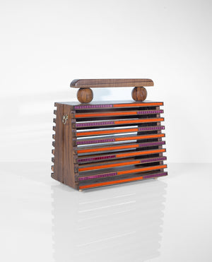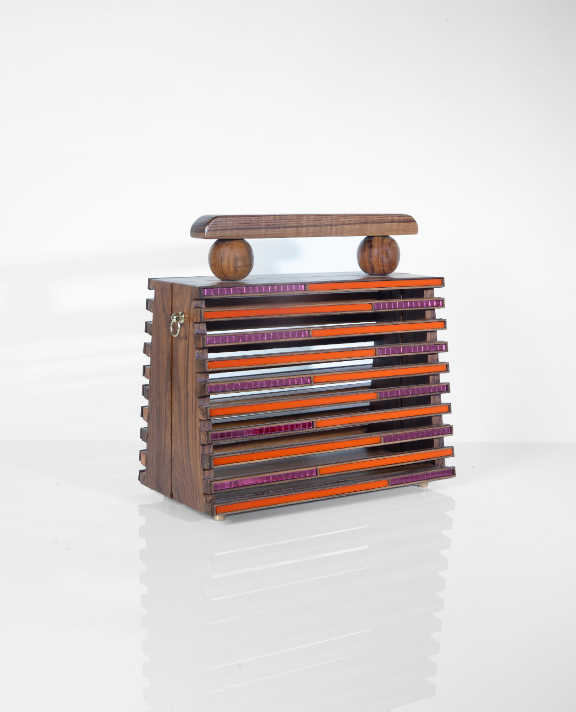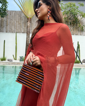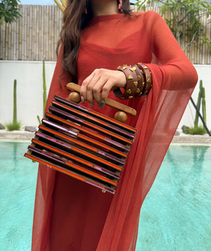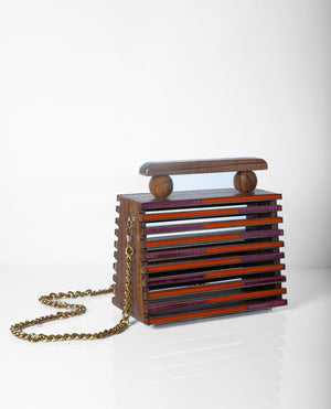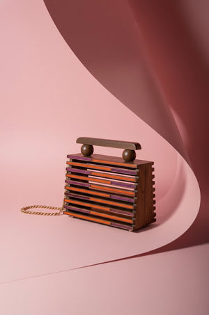 The At Odds Bag celebrates duality - clean lines meet soft hues, and structured form meets fluid detail. Handcrafted with layered wood and acrylic, it’s a study in balance - modern yet timeless, bold yet understated. Designed to hold your essentials and your individuality, it’s the kind of statement that whispers.
