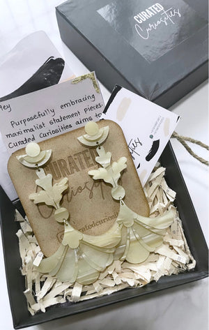 The DECONSTRUCTED SUMMER earring is made up of acrylic. This dreamy monochrome goodness will take you back to the spontaneous swims, al fresco dinner parties, sun and sand. Minimal or glam we've got you covered with this beauty to elevate any outfit.
