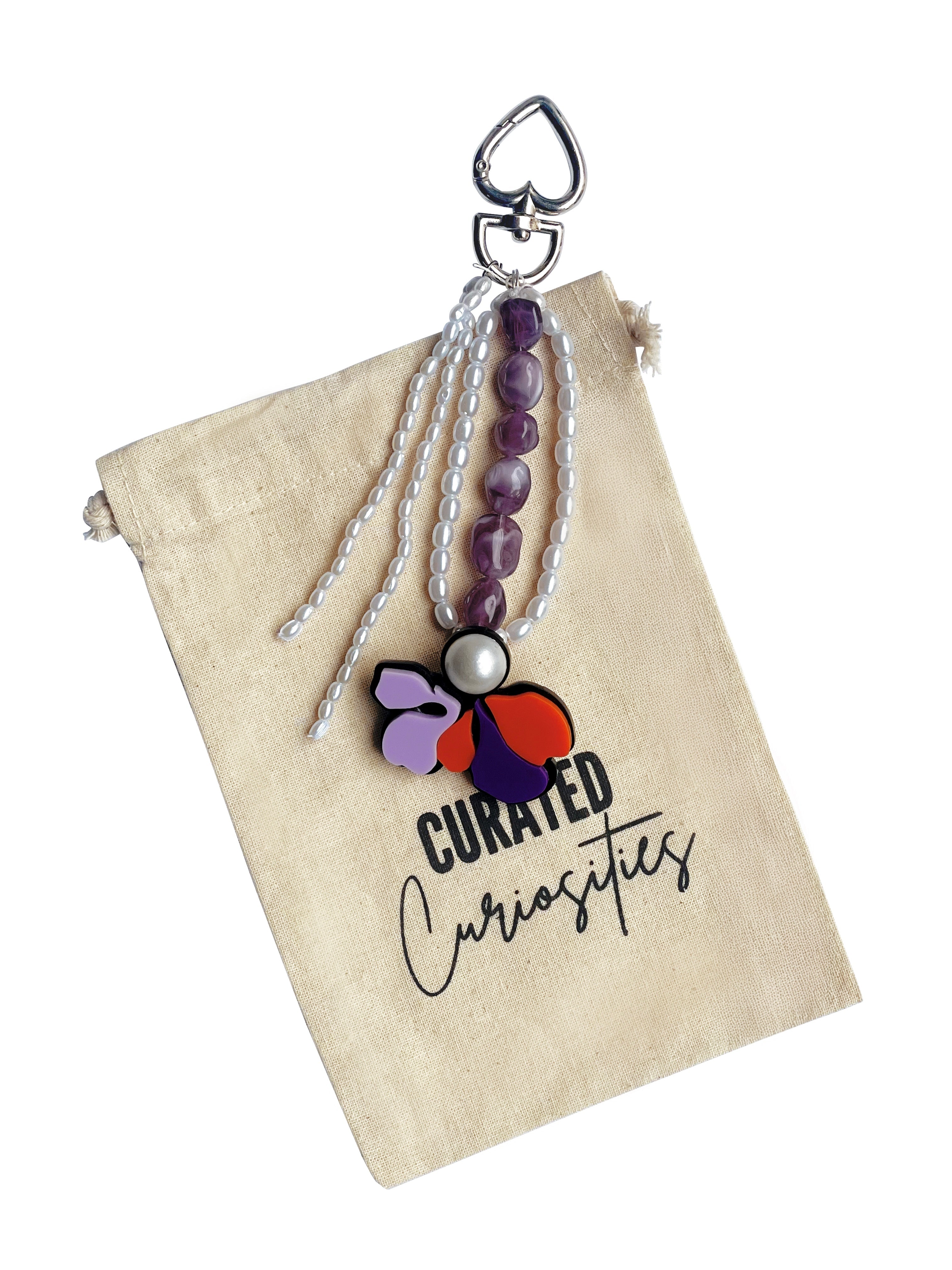 Featuring lilac resin beads, freshwater-style pearls, and our acrylic flower pendant, this charm balances playful elegance with curated craftsmanship - just like you.