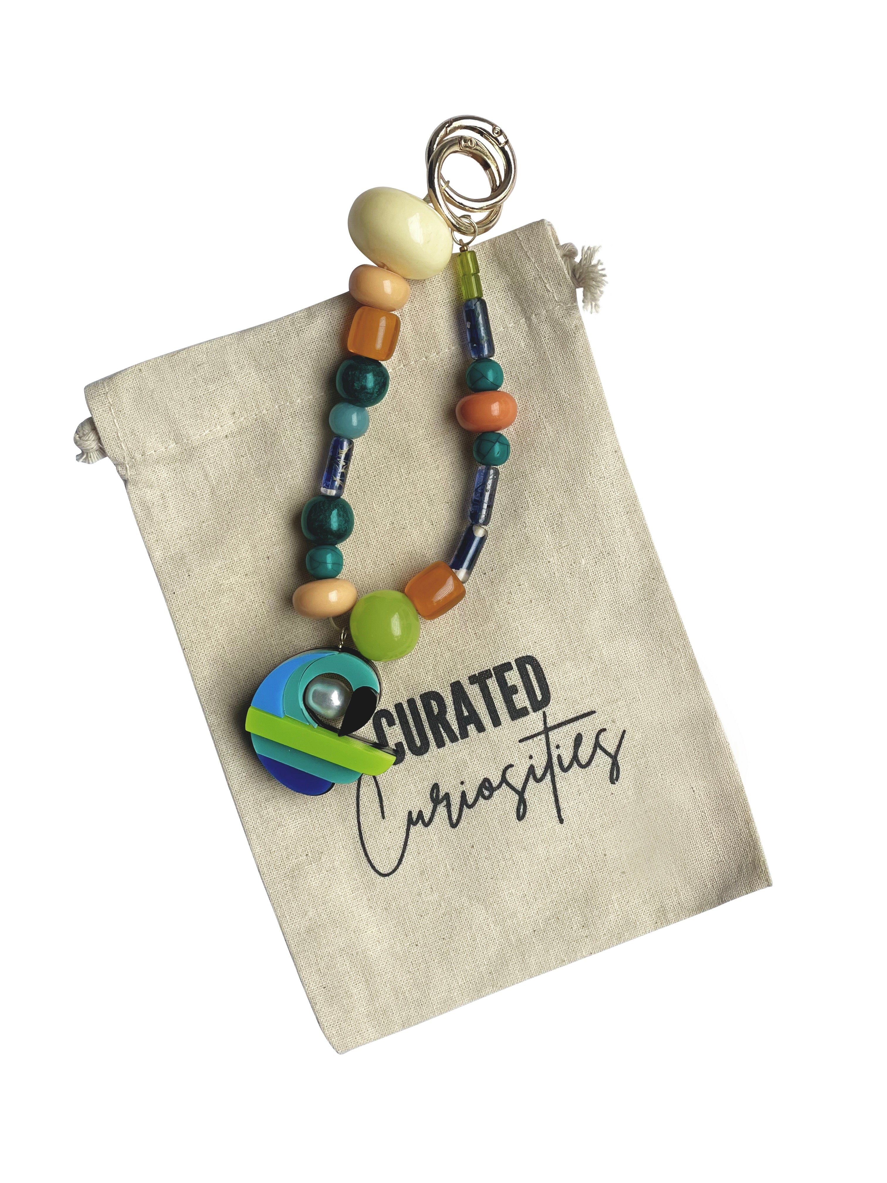 Each charm is hand-assembled using a curated mix of jewel-toned and translucent beads, anchored by our acrylic pendant that channels playful motion and natural rhythm. Clip it to your bag, and you're instantly carrying a conversation piece.