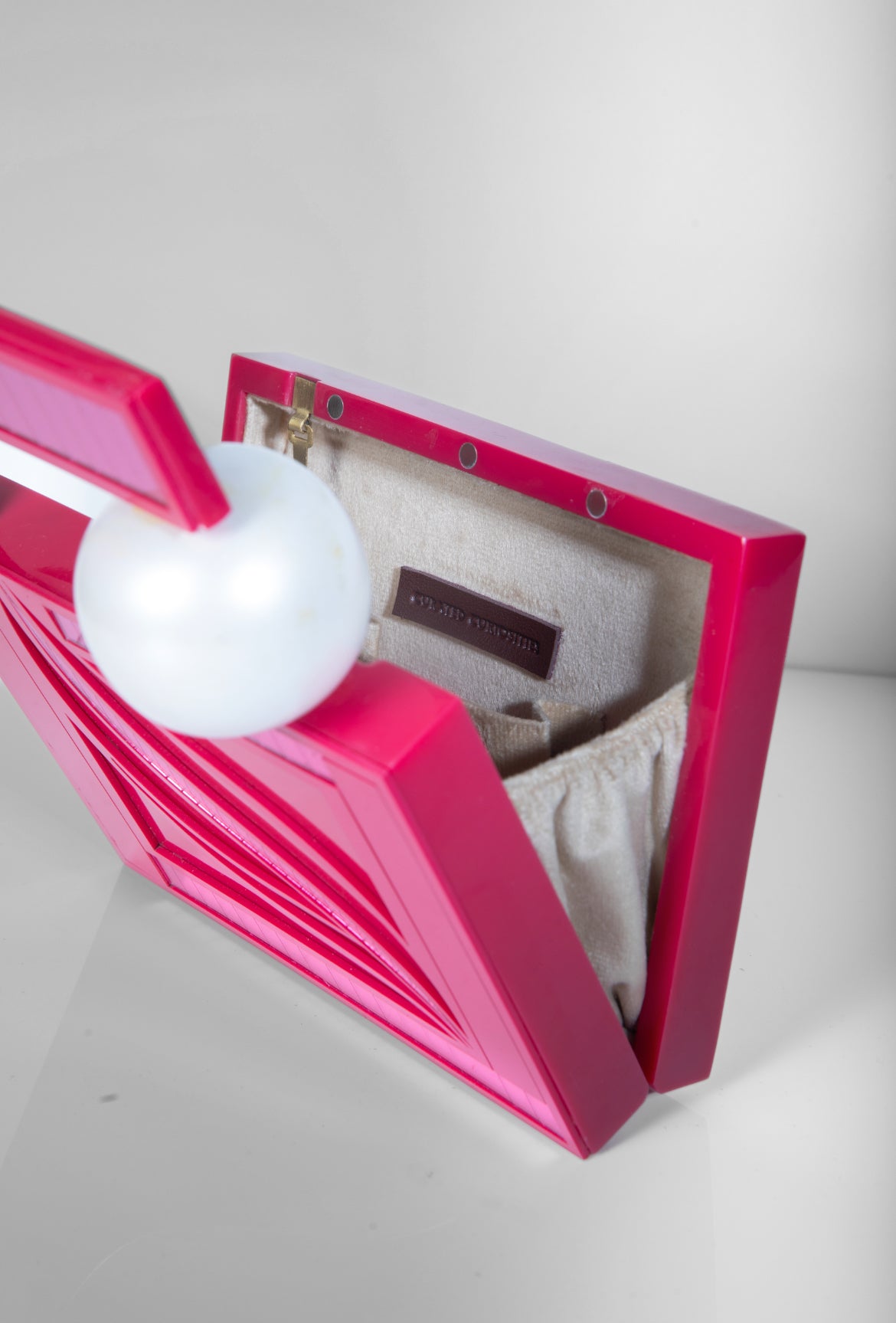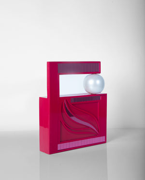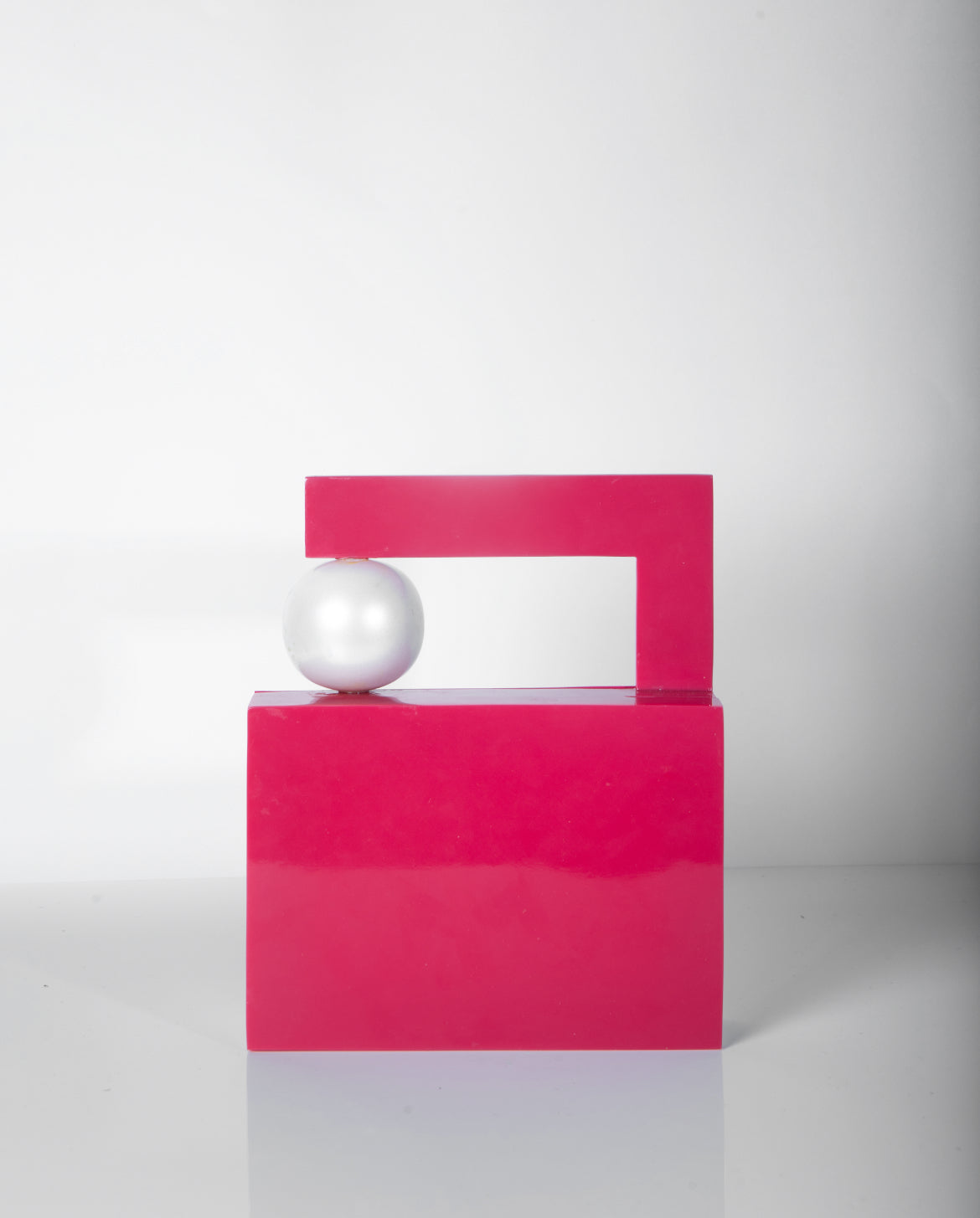 The Topsy Turvy Bag is an artistic rebellion against symmetry. Its bold open-frame silhouette, engraved details, and floating metallic sphere create a sculptural composition that feels both playful and precise. Crafted from polished acrylic and fine wood, it transforms everyday accessorising into a moment of visual intrigue. Consider it wearable architecture for days that deserve a daring edge.